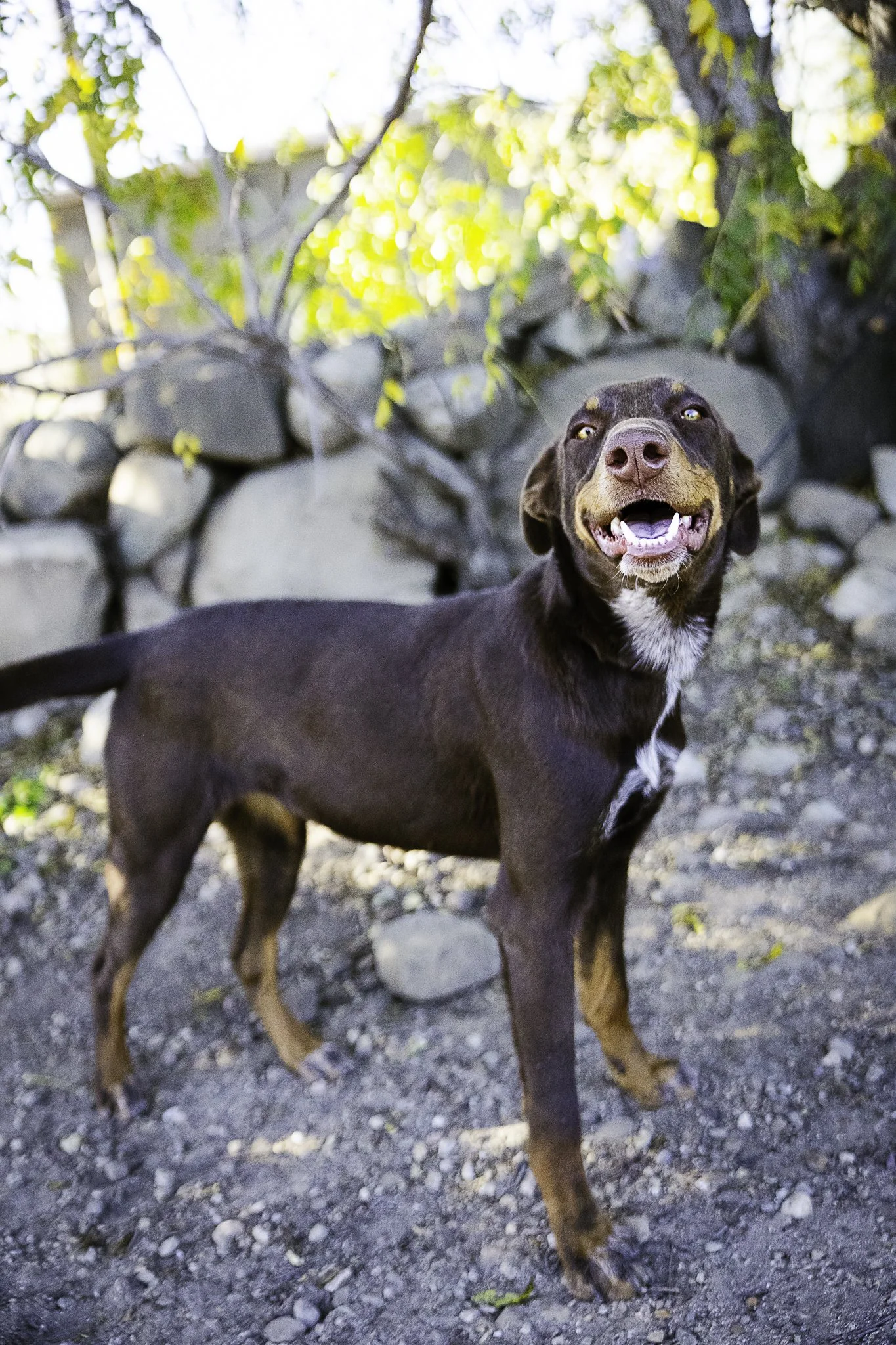 Nikkie came to us from a central valley animal shelter at 4 months.  She is now 9 months old and still waiting to be adopted.  We believe Nikkie is probably half Doberman; the other half is unknown...perhaps some Shepherd?  She's the size of a Dobie, and she is a pup that can hold her own with other dogs larger and tougher than she is, so she would likely be a good companion for another dog that enjoys a rough-and-tumble playstyle.  Nikkie is "too much dog" for small kids or elderly folks.
